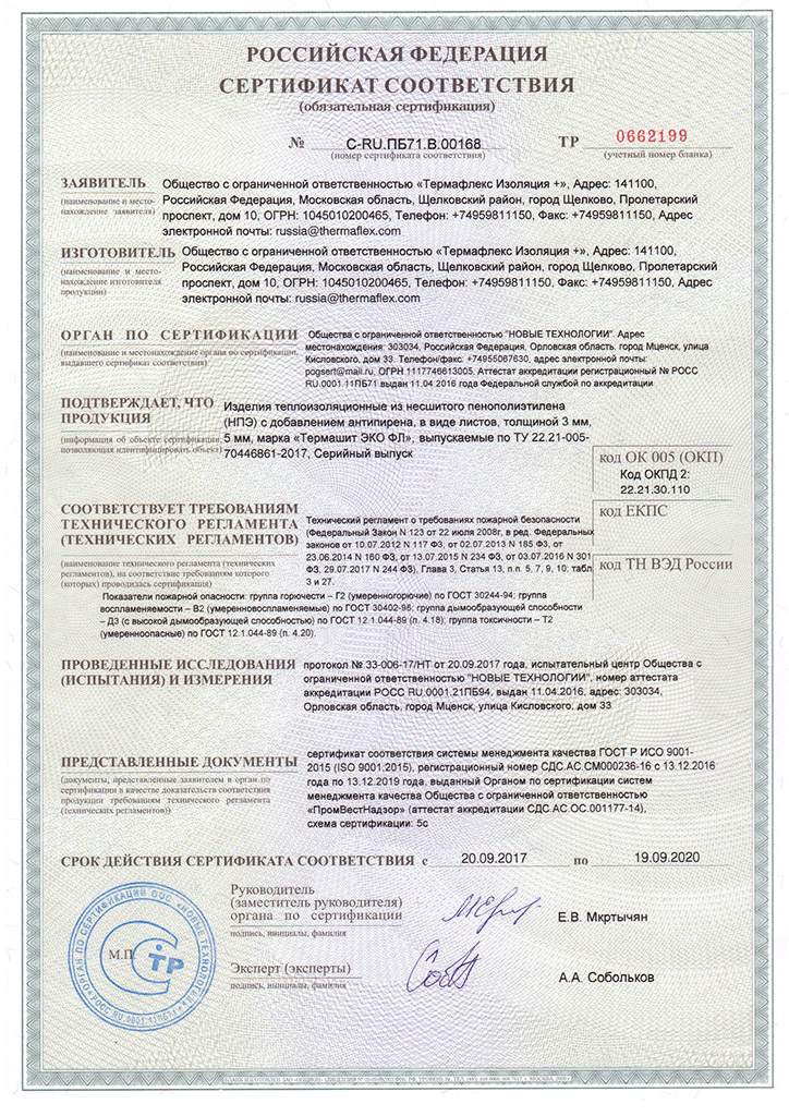 • Толщина изоляции – 6, 9, 13, 20, 25, 30 мм;